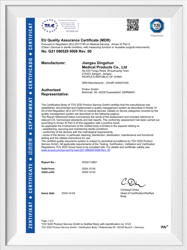 過去20年にわたり、Dingshun Medicalは国内外の市場で高く評価されてきました。製品は北米、欧州、日本、韓国を含む33以上の国と地域で販売されています。